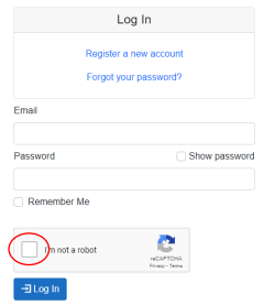 C. Enter the Email and Password used to Register new account and mark the “I’m not a robot” check box.