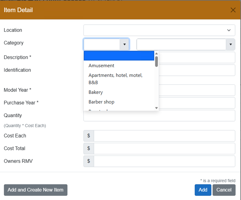 Select the “Add Item” button at the bottom of the list. The item detail window will pop up.