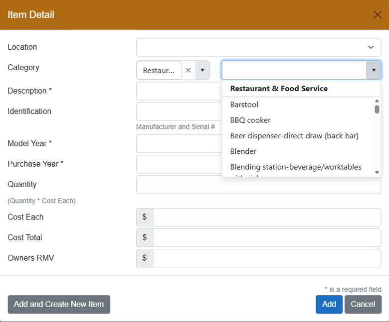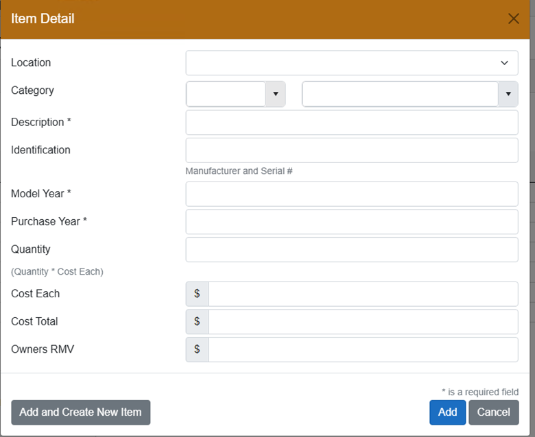 c. Fill in the rest of the fields – Description, Model Year, Purchase Year, and Cost are required. If you are listing an item that is used, donated, or handmade include the Cost Price of what the item is worth.