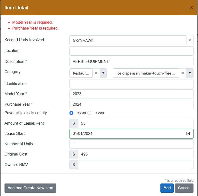 You will then enter the details of the leased asset: Second Party Involved is the leasing company. Once you have entered all of the information click the blue “Add” button.