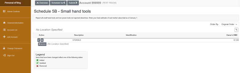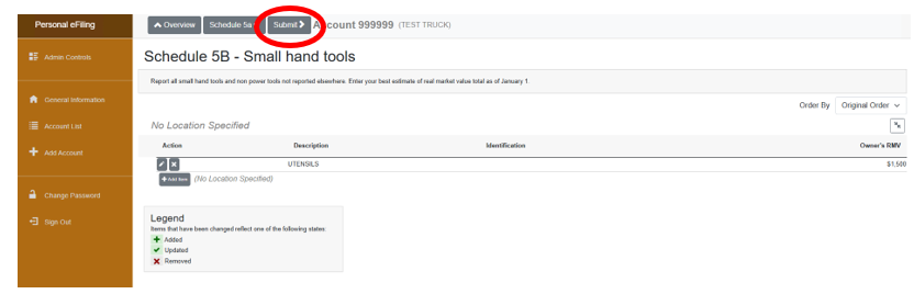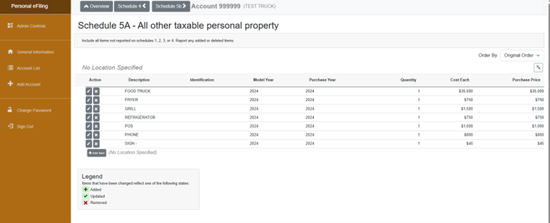 6. Schedule 5A – All other taxable Personal Property